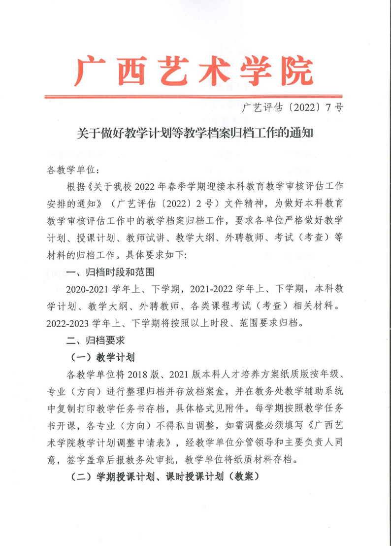 广艺评估〔2022〕7号关于做好教学计划等教学档案归档工作的通知