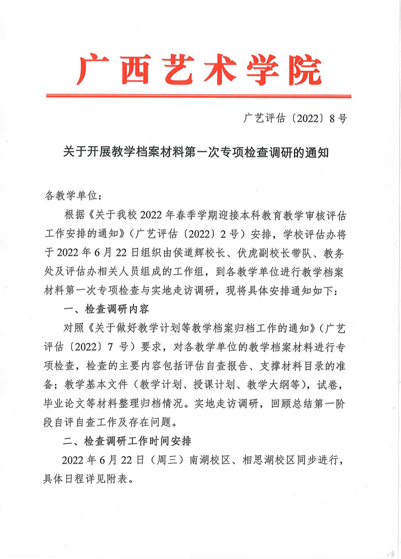 广艺评估〔2022〕8号关于开展教学档案材料第一次专项检查调研的通知