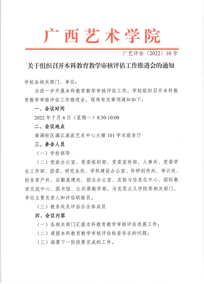 广艺评估〔2022〕10号关于组织召开本科教育教学审核评估工作推进会的通知