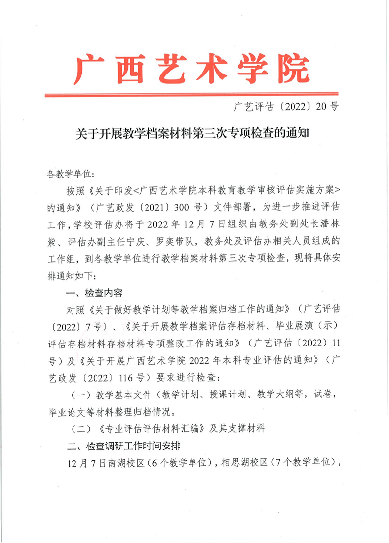 广艺评估〔2022〕20号关于开展教学档案材料第三次专项检查的通知