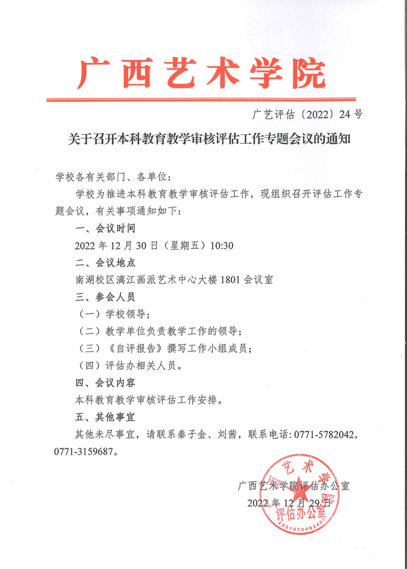 广艺评估〔2022〕24号关于召开本科教育教学审核评估工作专题会议的通知