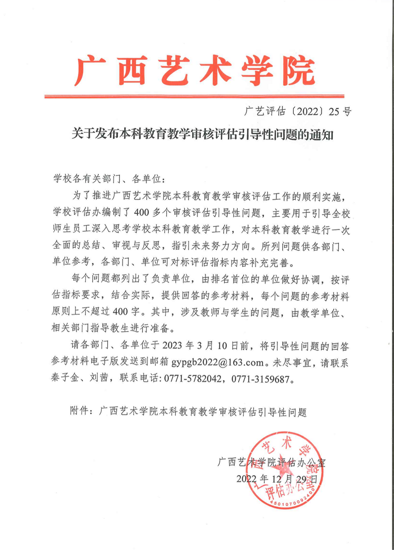 广艺评估〔2022〕25号 关于发布本科教育教学审核评估引导性问题的通知