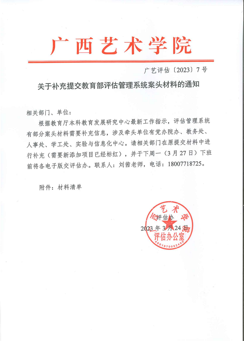 广艺评估〔2023〕7号关于补充提交教育部评估管理系统案头材料的通知