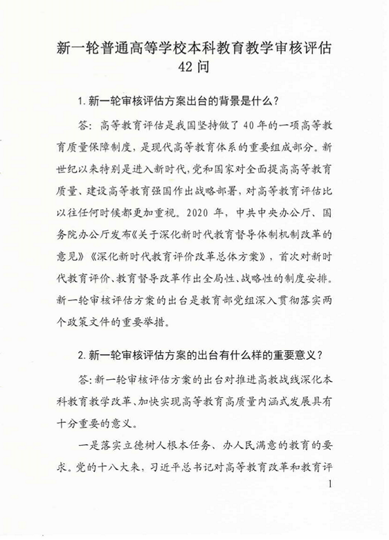 新一轮普通高等学校本科教育教学审核评估42问