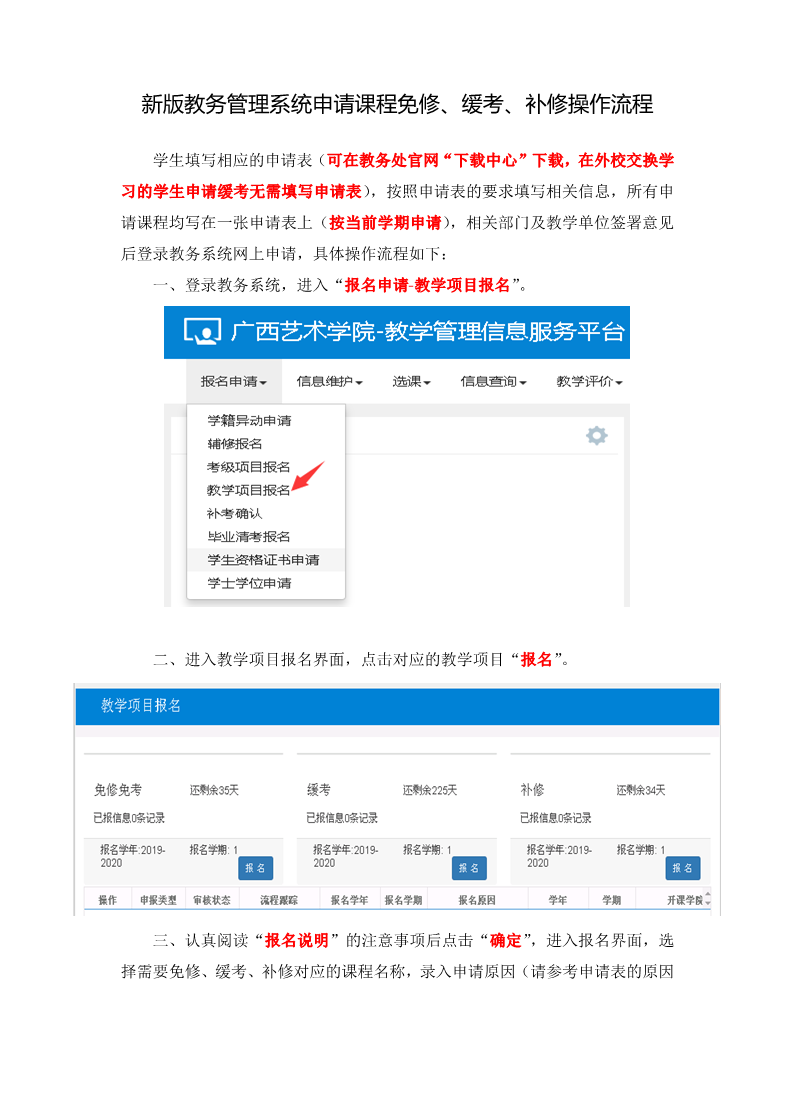 【学生】教务管理系统本专科生申请课程缓考、补修、免修操作流程