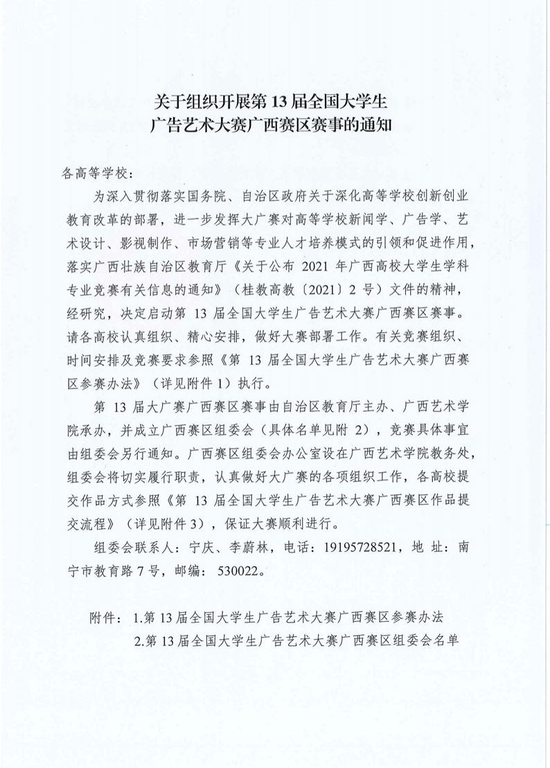 关于组织开展第13届全国大学生广告艺术大赛广西赛区赛事的通知